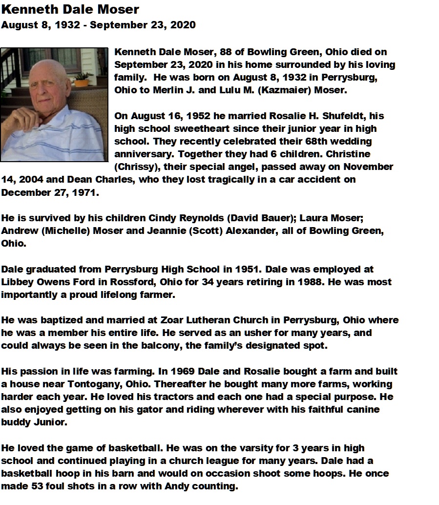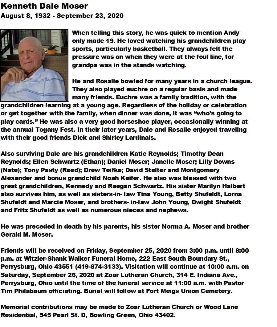 Moser, Kenneth - Obituary pg 1, Witzler Shank Walker Funeral Home, Perrysburg, OH