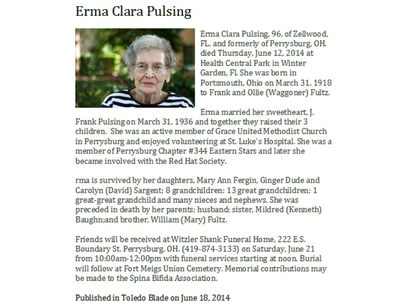 Pulsing, Erma, Witzler Shank Funeral Home