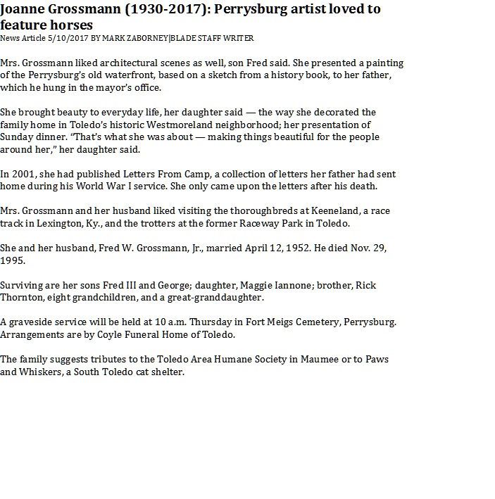 Grossmann, Joanne - News Article pg 2, Coyle Funeral & Cremation Services, Toledo, OH News article found in Toledo Blade