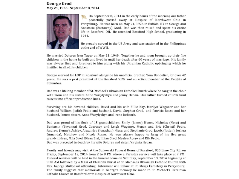 Grod, George, Sujkowski Funeral Home of Rossford
