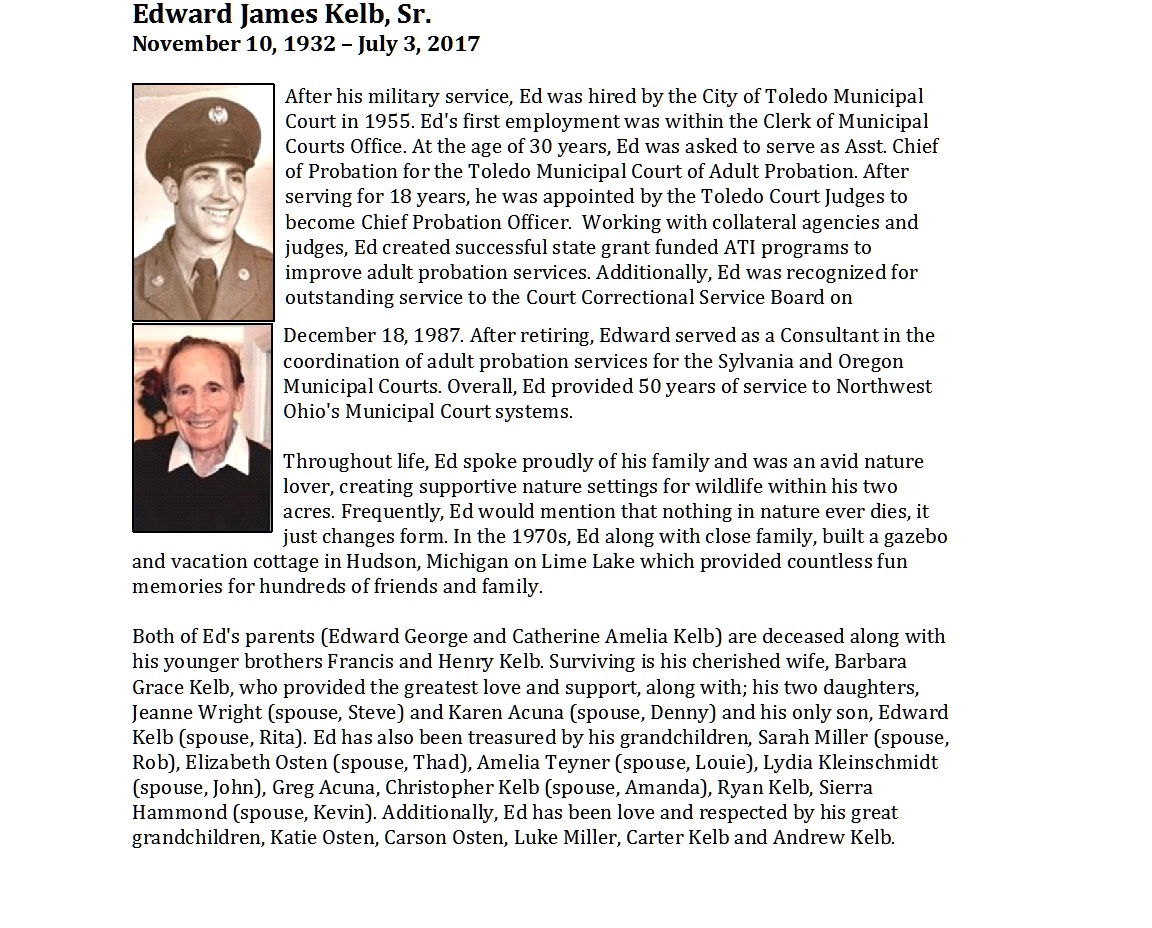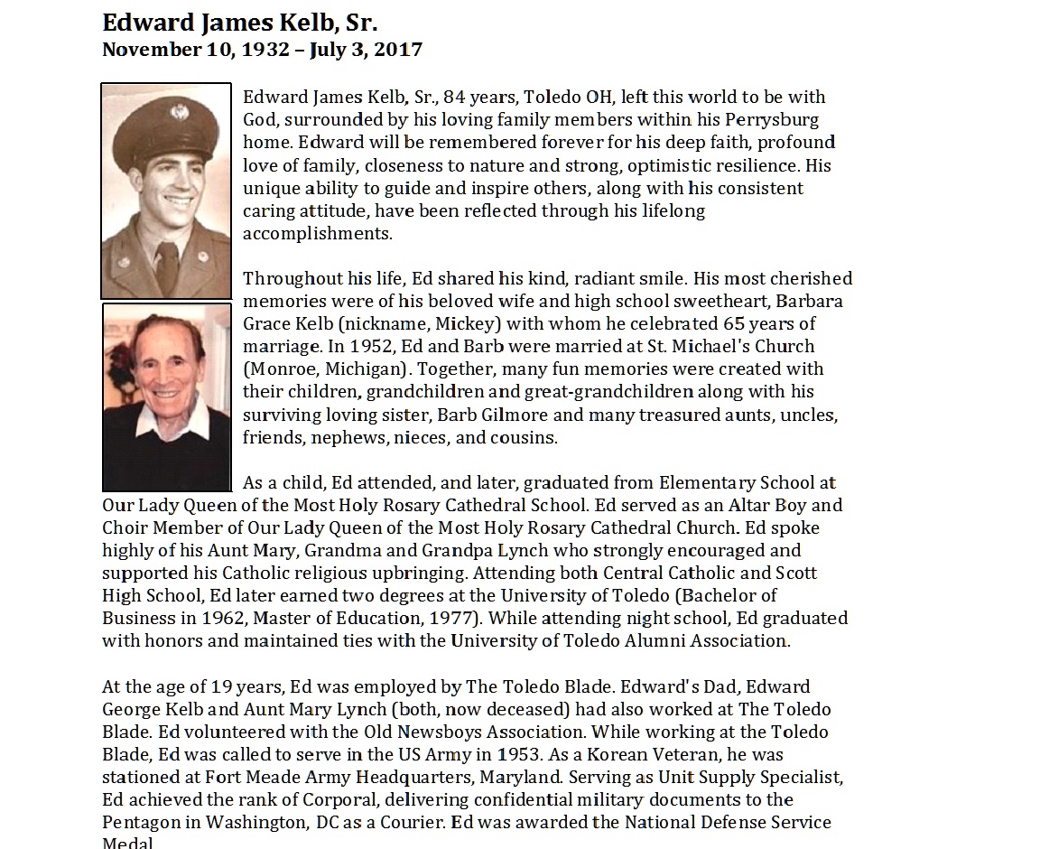 Kelb Sr, Edward - Obituary pg 1