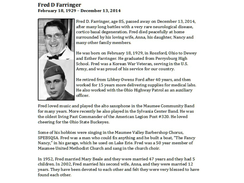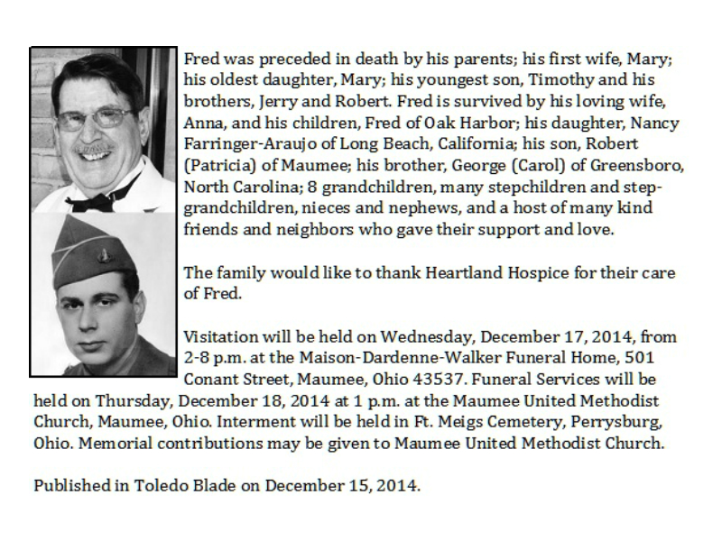 Farringer, Fred - Obit page 2, Maison Dardenne Walker Funeral Home