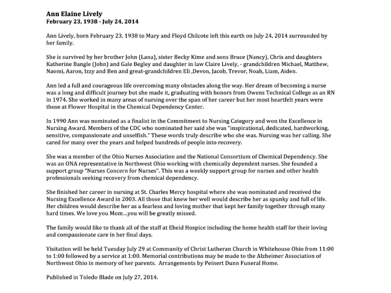 Lively, Ann E, Toledo Blade; July 27, 2014