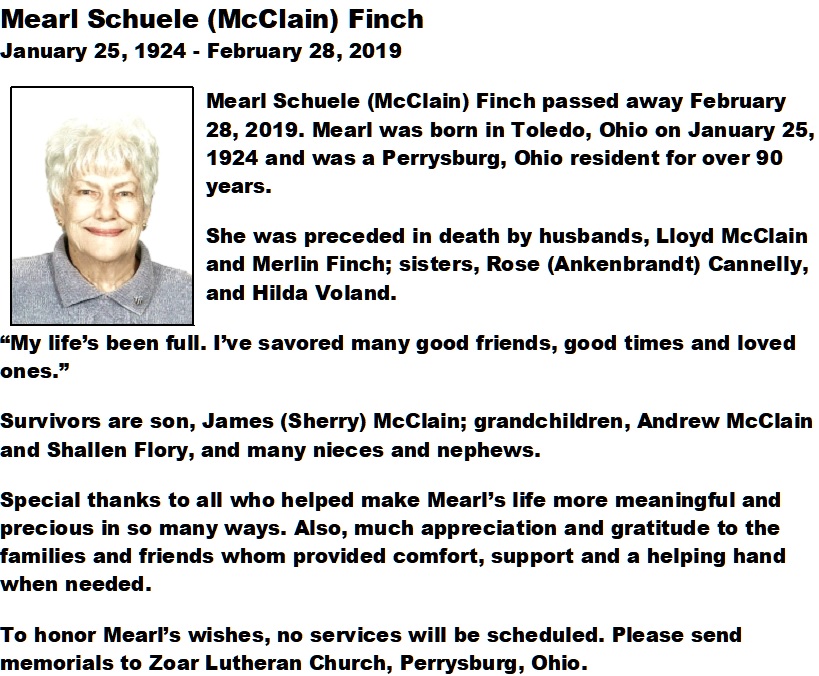 McClain-Finch, Mearl - Obituary, Cremation Society of Toledo, Toledo, OH