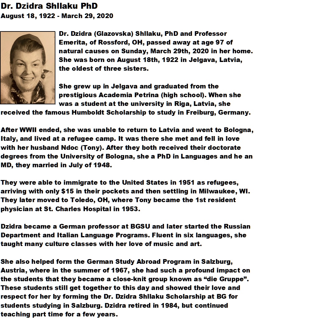 Shllaku, Dr Dzidra - Obituary pg 2, Sujkowski-Walker Funeral Home, Rossford, OH