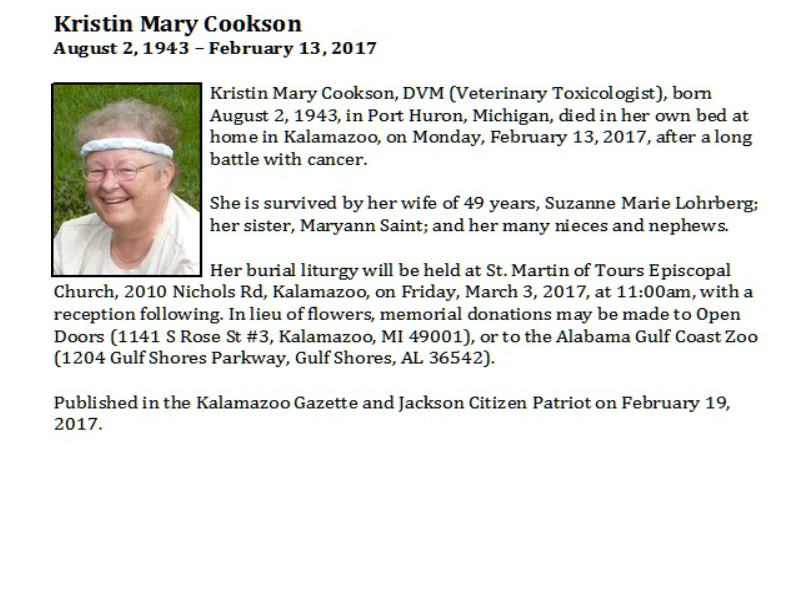 Cookson, Kristin, Whitley Funeral Home, Battle Creek, MI Published in Kalamazoo Gazette & Jackson Citizen Patriot; 02/19/2017