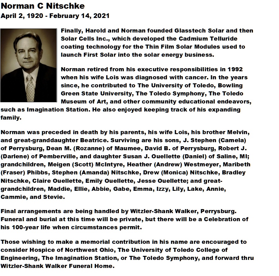 Nitschke, Norman - Obituary pg 1, Witzler Shank Walker Funeral Home, Perrysburg, OH