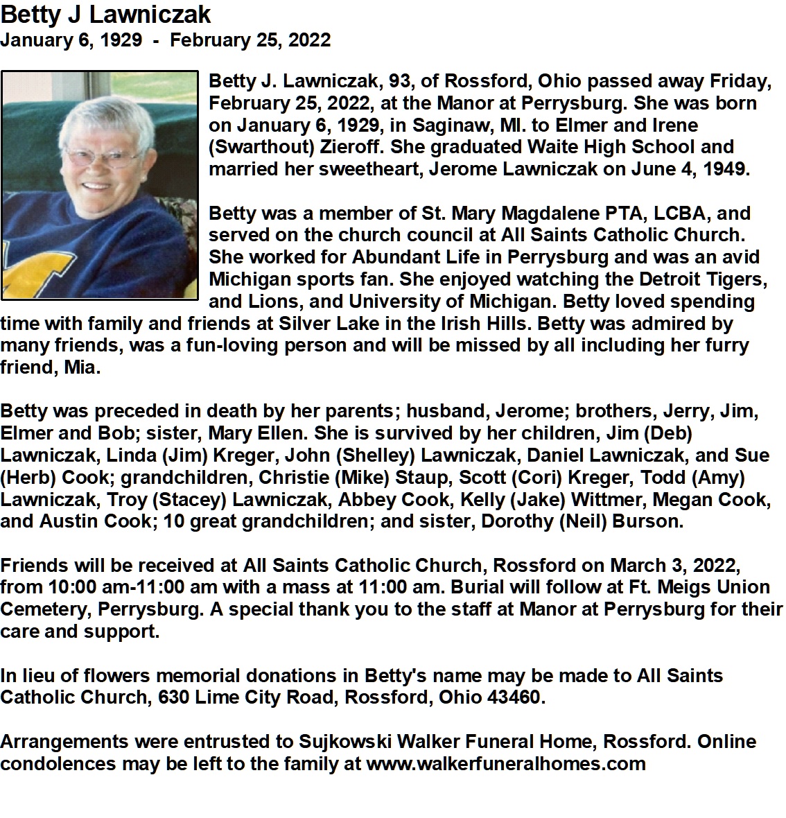 Obituary, Sujkowski-Walker Funeral Home, Rossford, OH
