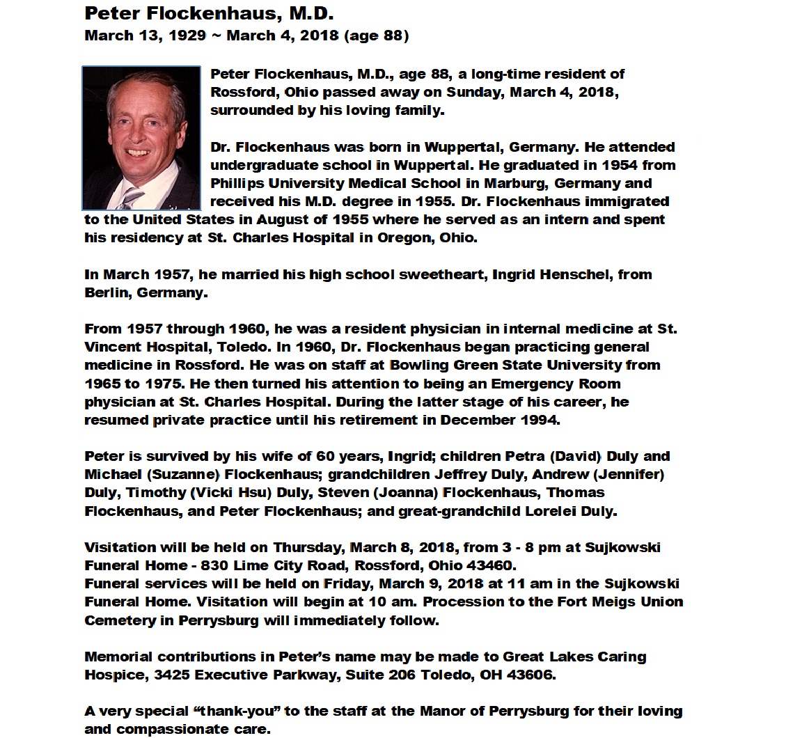 Flockenhaus, Peter, Sujkowski Funeral Home, Rossford, OH