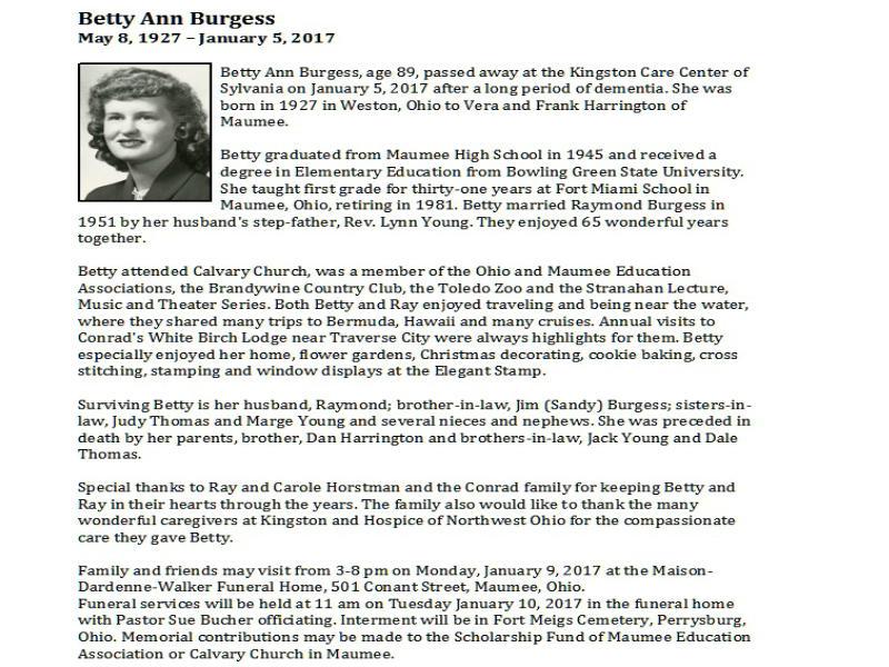 Burgess, Betty, Maison-Dardenne-Walker Funeral Home, Maumee, OH