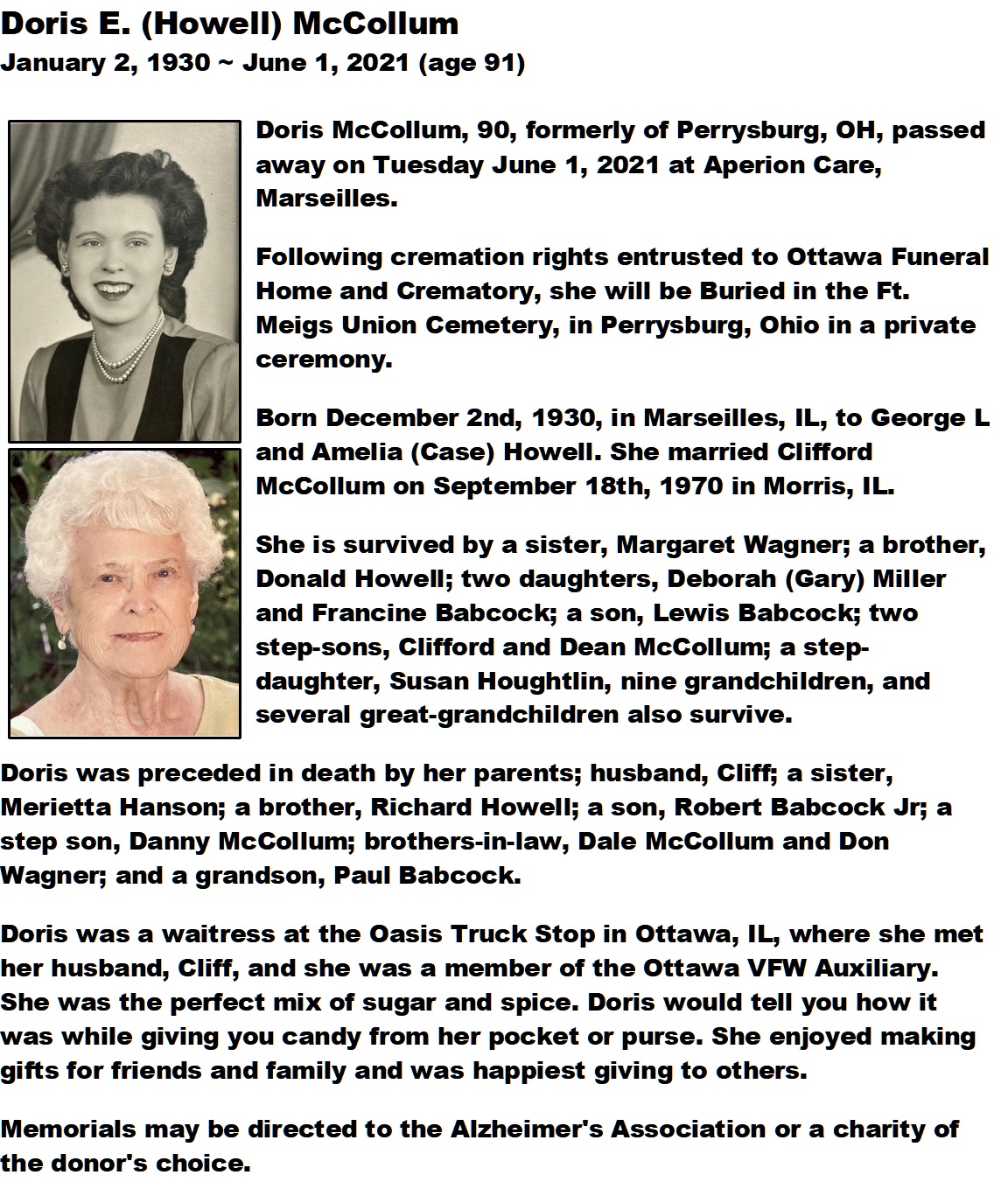 MCollum, Doris - Obituary, Ottawa Funeral Home, Ottawa, IL