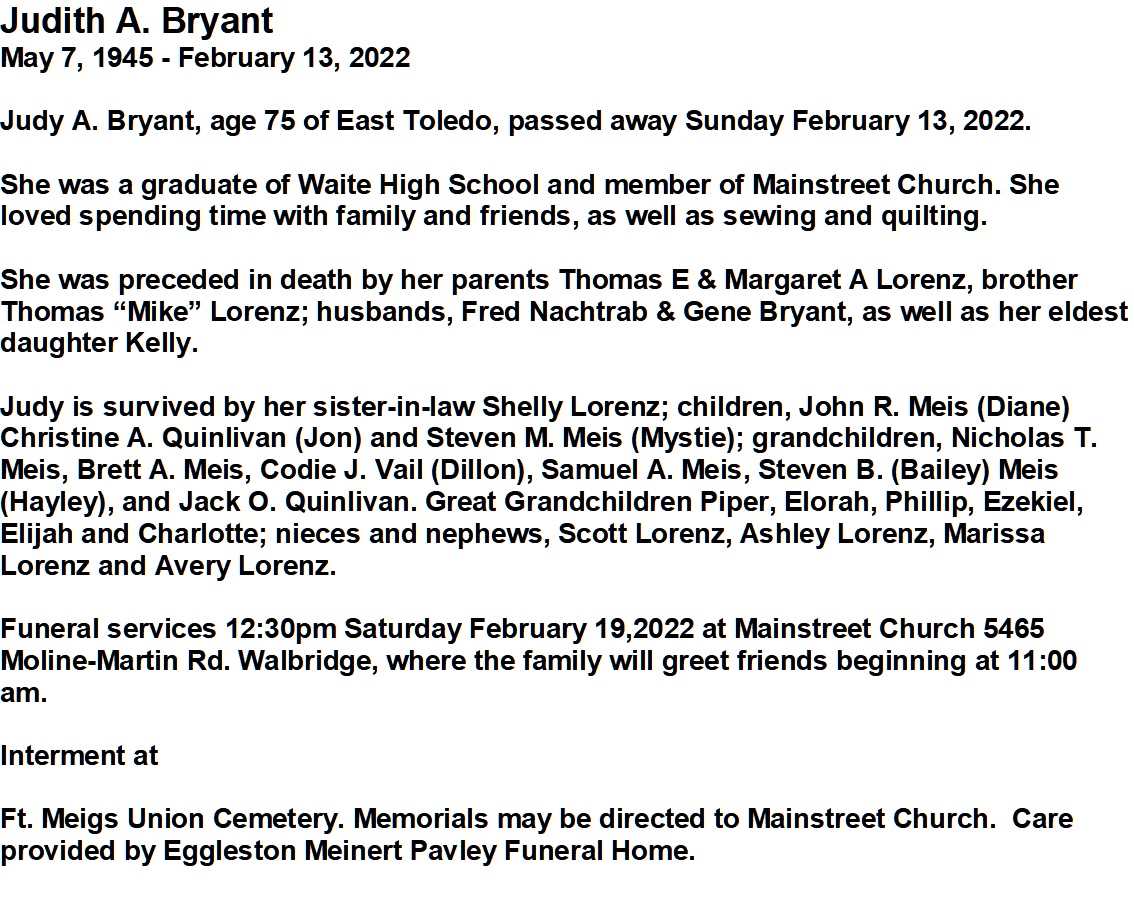 Obituary, Eggleston, Meinert & Pavley Funeral Home