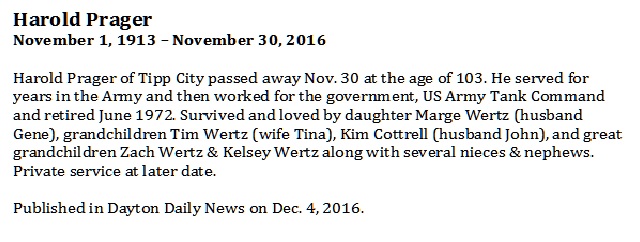 Prager, Harold, Maison-Dardenne-Walker Funeral Home, Maumee, OH