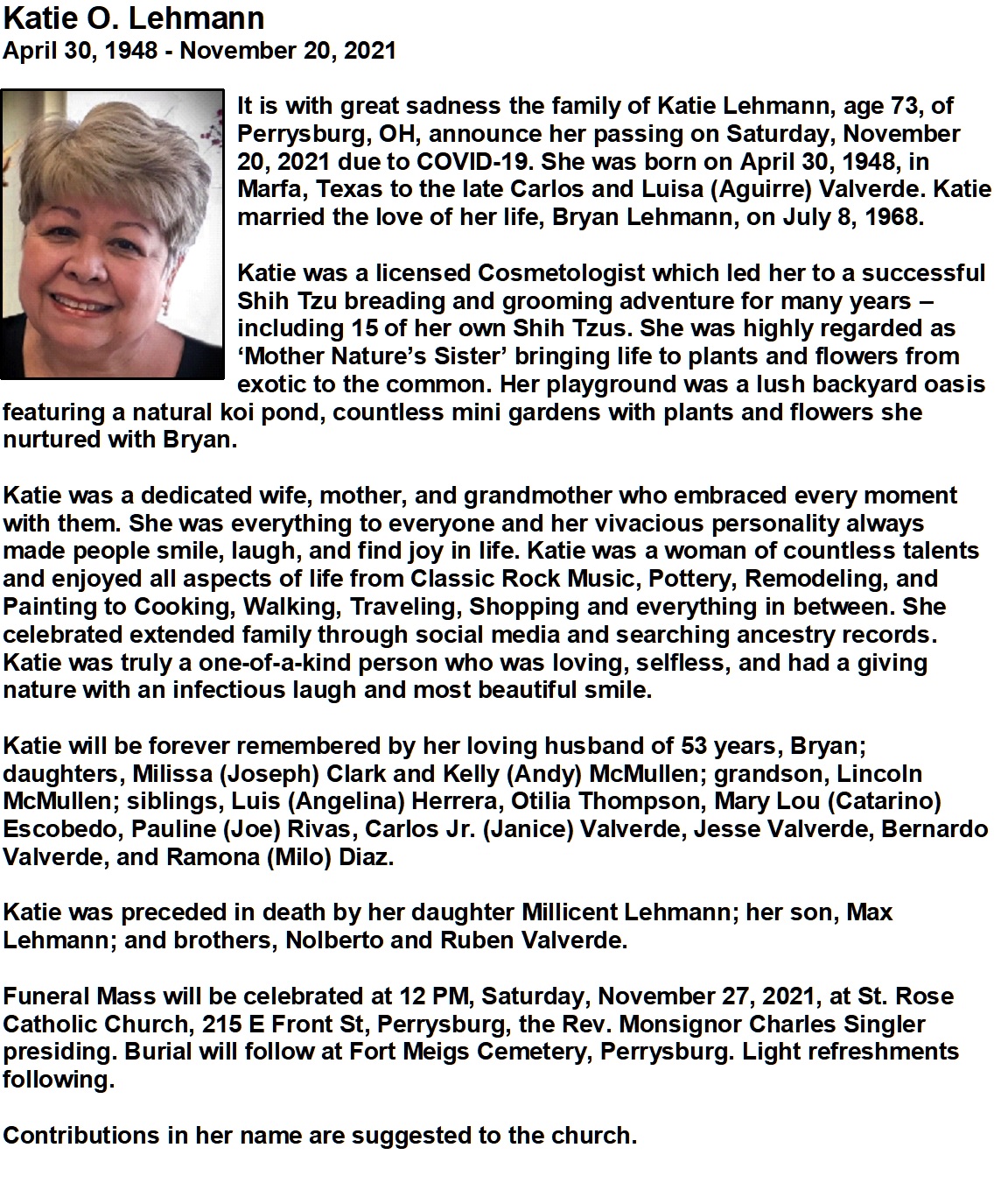 Lehmann, Katie - Obituary, Witzler Shank Walker Funeral Home, Perrysburg, OH