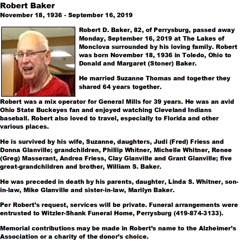Baker, Robert - Obituary, Witzler Shank Funeral Home, Perrysburg, OH