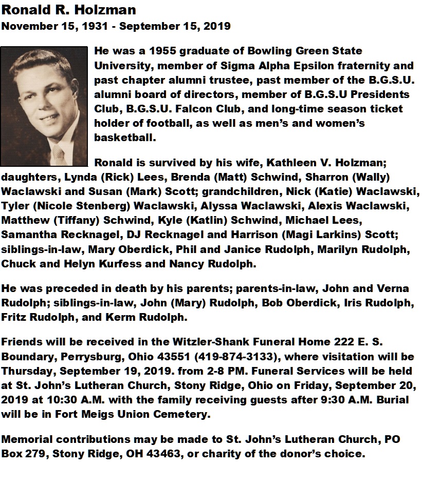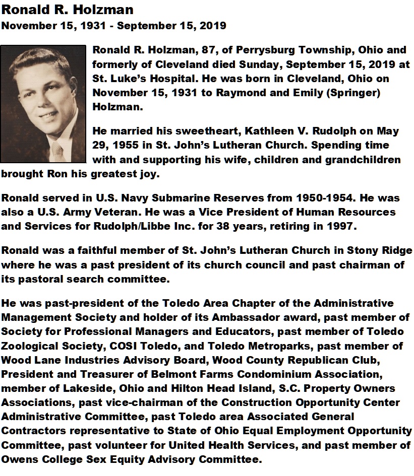 Holzman, Ronald - Obituary pg 1, Witzler Shank Funeral Home, Perrysburg, OH