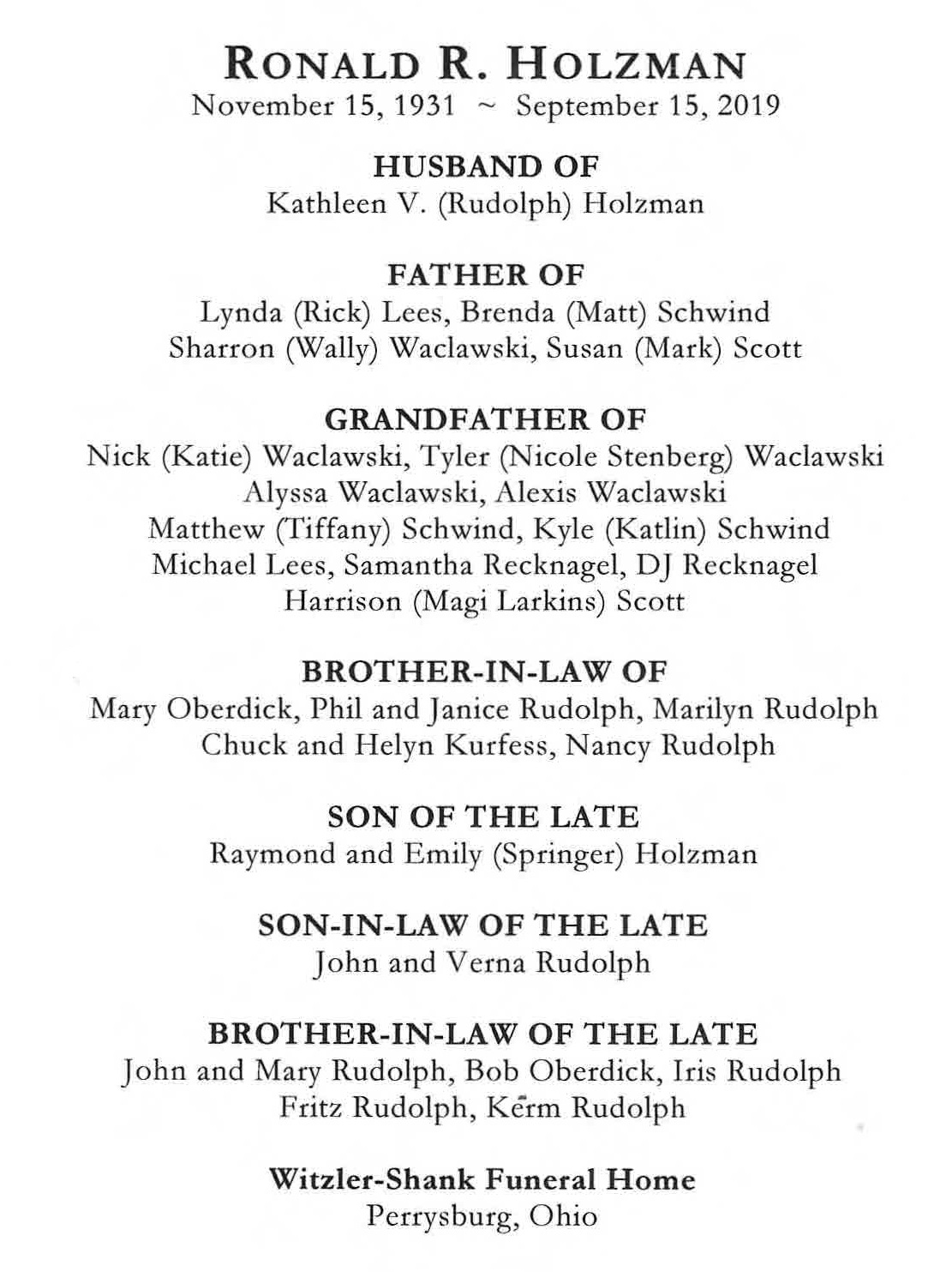 Holzman, Ronald - Obituary pg 2, Witzler Shank Funeral Home, Perrysburg, OH