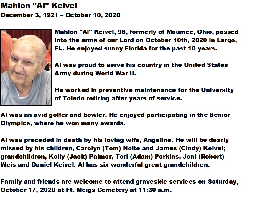 Keivel, Mahlon - Obituary, Sujkowski & Son Funeral Home, Toledo, OH