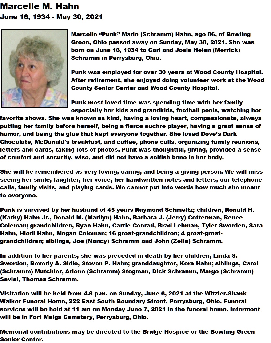 Hahn, Marcelle - Obituary, Witzler Shank Walker Funeral Home, Perrysburg, OH