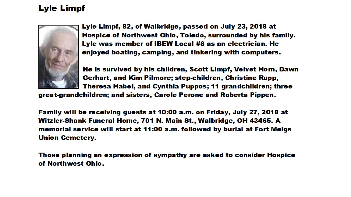 Limpf, Lyle, Witzler Shank Funeral Home, Perrysburg, OH