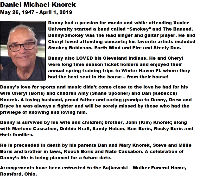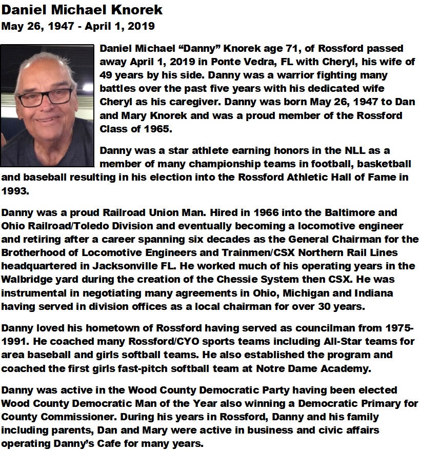Knorek, Daniel - Obituary pg 1, Sujkowski-Walker Funeral Home, Rossford, OH