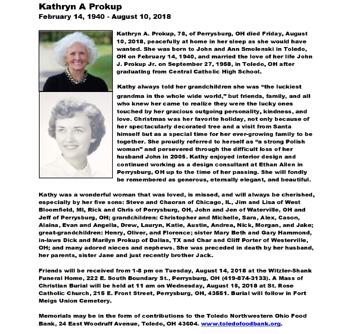 Prokup, Kathryn A, Witzler Shank Funeral Home, Perrysburg, OH