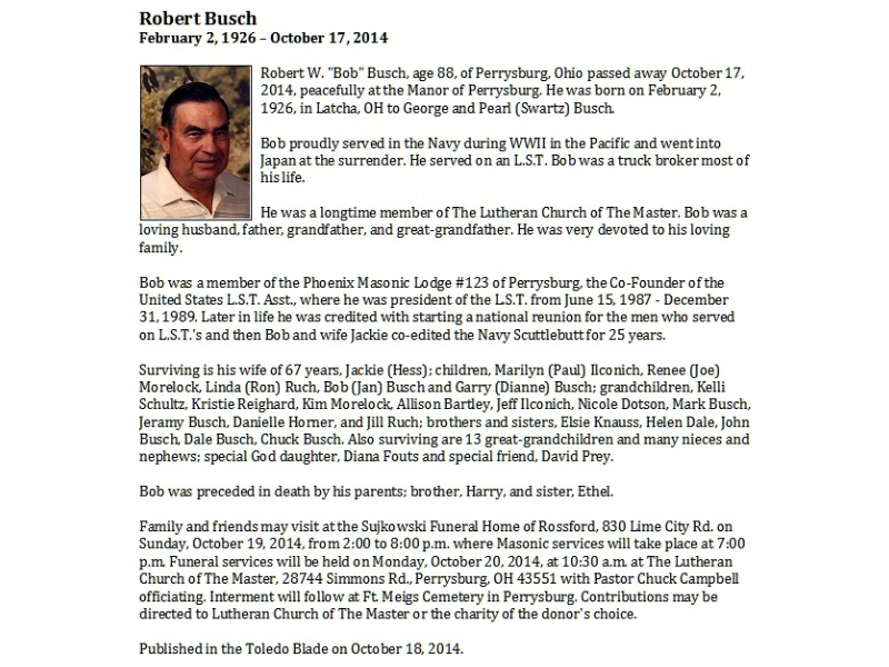 Busch, Robert - News Article pg 2, Published in Toledo Blade; 10/19/2014