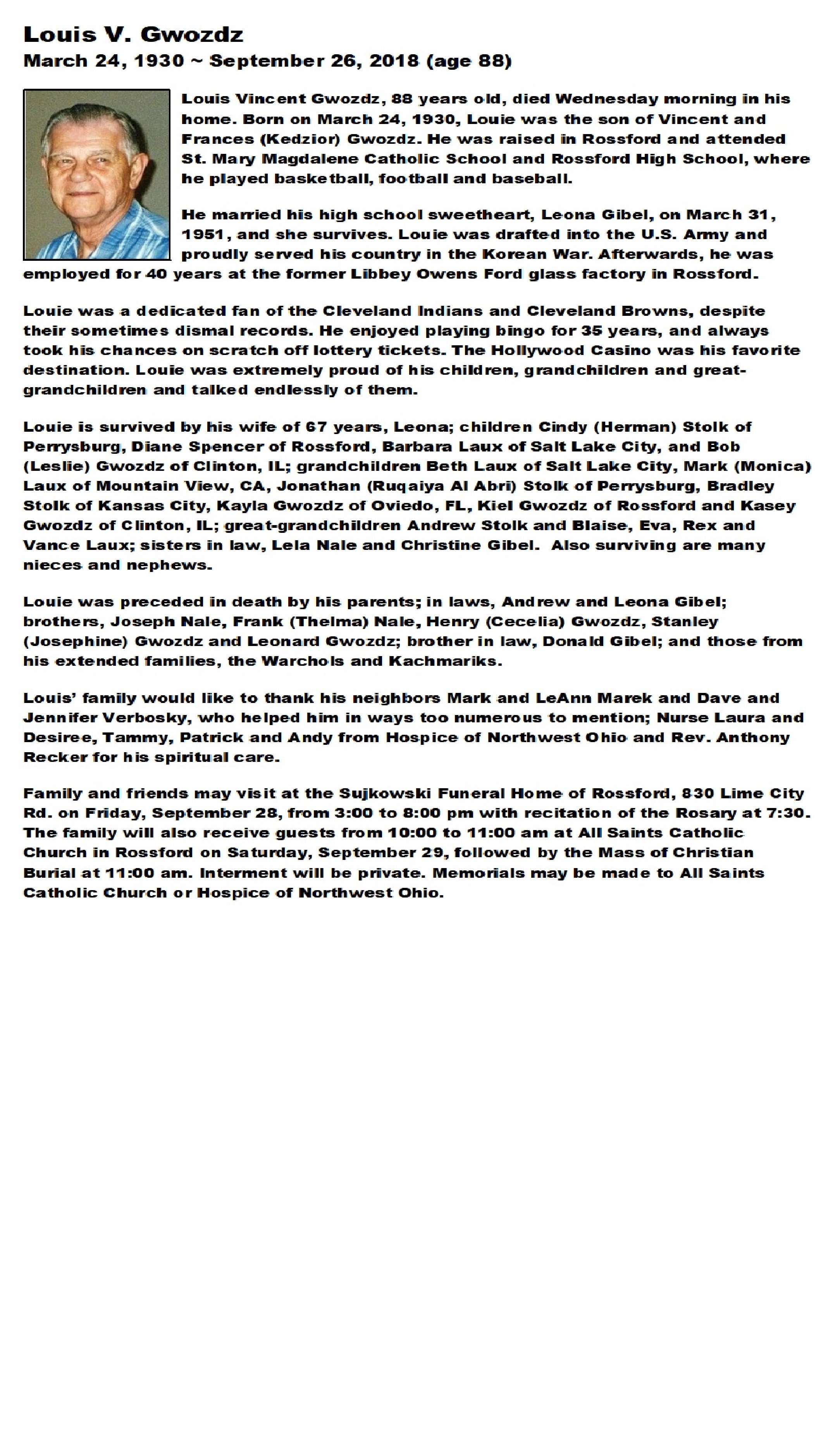 Gwozdz, Louis, Sujkowski Funeral Home, Rossford, OH