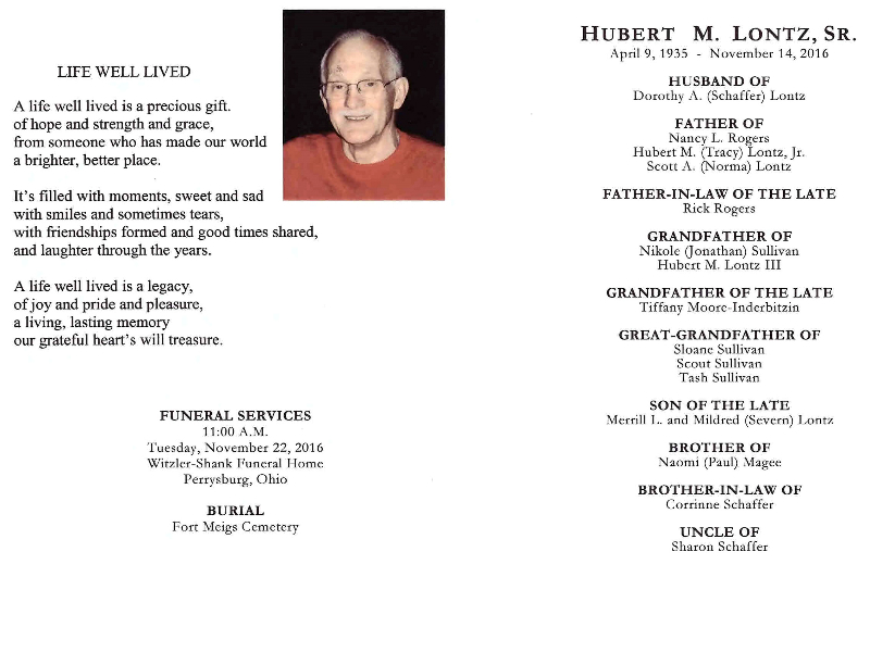 Lontz, Hubert, Witzler Shank Funeral Home, Perrysburg, OH