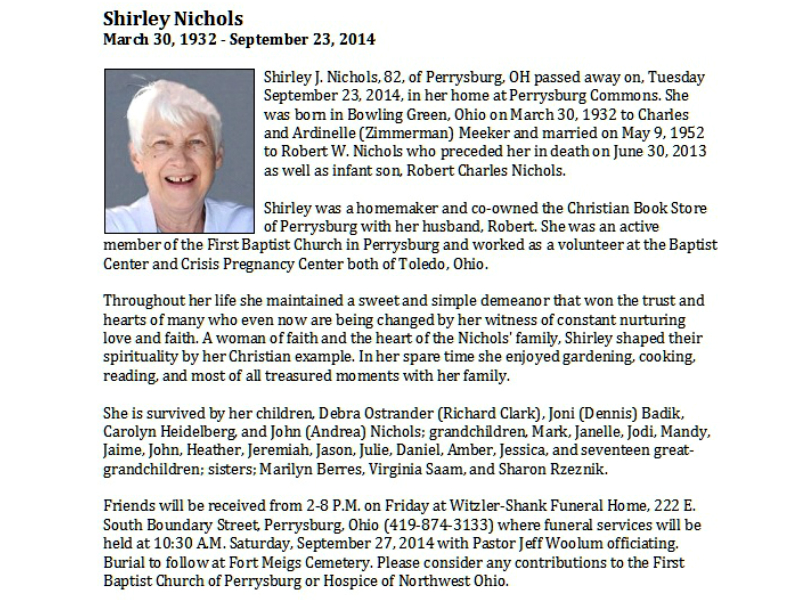Nichols, Shirley, Witzler Shank Funeral Home