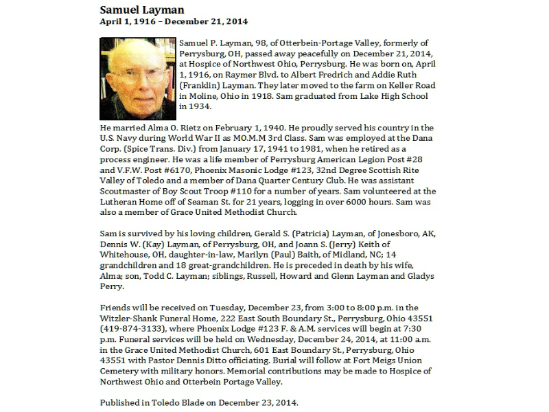 Layman, Samuel - Photo Collage, Witzler Shank Funeral Home