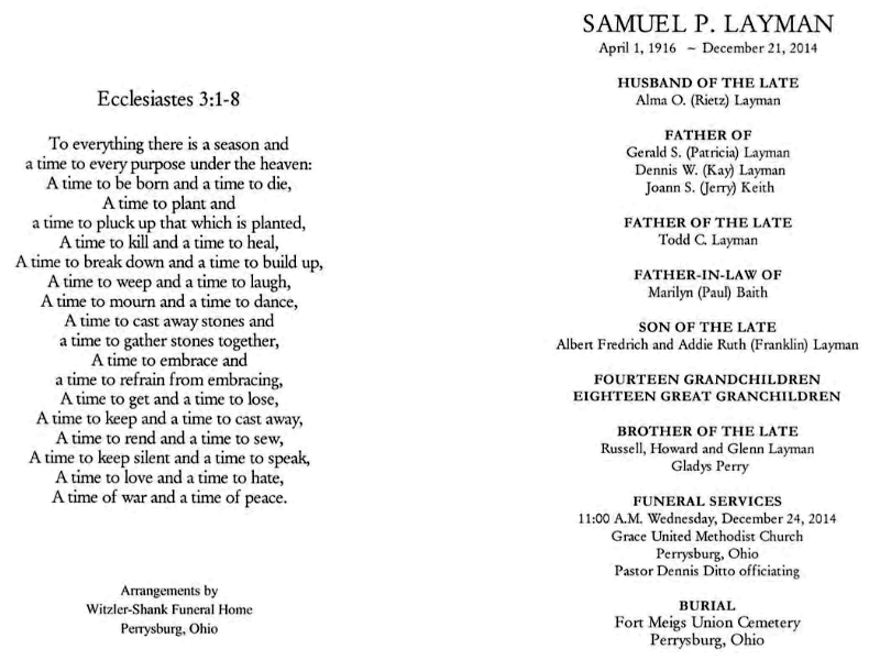 Layman, Samuel - Remembrance Card, Witzler Shank Funeral Home