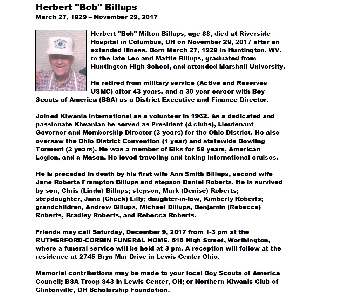 Billups, Herbert, Rutherford-Corbin Funeral Home, Worthington, OH